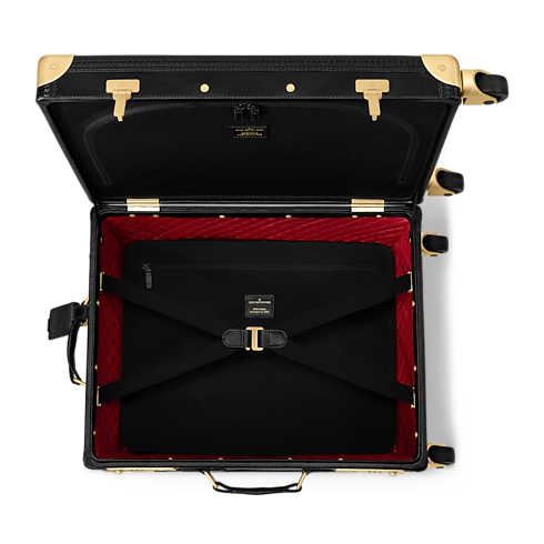 Crafted from cowhide leather with a waxy finish inspired by vintage leather jackets, this exceptional Rolling Trunk makes a striking statement. It’s adorned with 79 meticulously designed leather pins—each handcrafted in-house with a rigid base and 3D effect that mimics metal. A quilted red leather lining underscores the rebellious spirit of this luxurious piece.