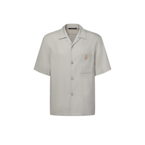 Blending luxury and comfort, this beige short-sleeved shirt features a light cotton, silk and cashmere blend twill with a soft and airy touch. It has a relaxed, draped fit with an open collar and LV stitching on the first button. The chest pocket is adorned with a VVN leather signature tab that recalls the House’s trunk-making heritage.
