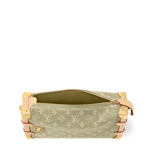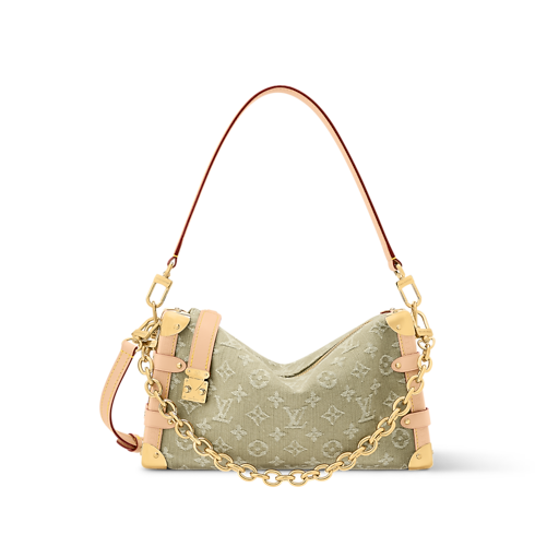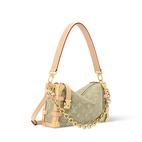 The Denim Rendez-Vous collection presents this contemporary update on the Side Trunk East-West, offering an elongated profile and a timeless Khaki colorway. Decorated with the House's emblematic pattern, it is trimmed with smooth cowhide and features iconic trunk-inspired corners in a gold-toned finish that matches the signature S-lock and chain. Both the strap and top handle are removable, providing plenty of styling options.