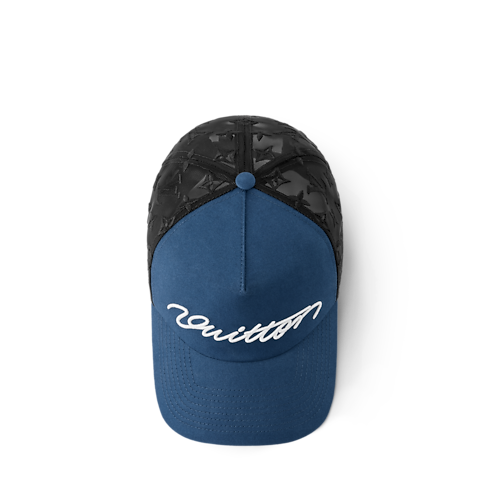 Introducing a new, on-trend trucker silhouette, the Signature Mesh Cap brings a bold, playful take on modern streetwear. The front panel is defined by the embroidered "Vuitton" signature in contrasting white, while the breathable mesh back is fully adorned with Monogram embroideries.