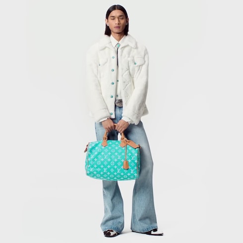 The Speedy P9 Bandoulière 40 bag is made from extra-soft calfskin in a colorway inspired by precious stones. This less structured version of the iconic Speedy is body-friendly and very comfortable to carry. As part of Pharrell Williams’ cowboy-influenced collection for Fall-Winter 2024, the handle mounts feature embossed horses.