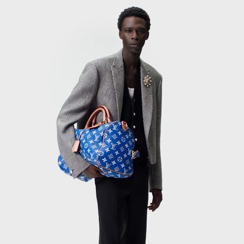 Working with naturally supple grained calfskin, Creative Director Pharrell Williams has given this Speedy P9 Bandoulière 40 Monogram Leather a super-soft feel. The Monogram is printed on bright leather in a high-end silk-screen technique that perfectly reproduces the almost blurry effect of Monogram printed on canvas. This Speedy is fully lined with ultra-luxurious lambskin leather.