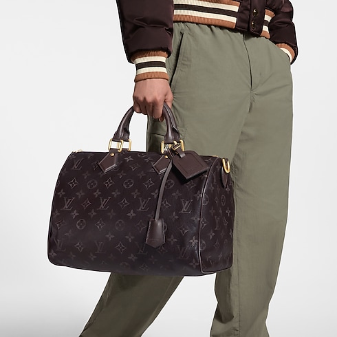 The slouchy lines of the Speedy P9 Bandoulière 40 are elevated by supple calfskin with a washed-out Monogram print, creating an understated look with attitude. Matching calfskin details accent the signature name tag and key bell. With its spacious interior, this versatile piece makes a great overnight bag.