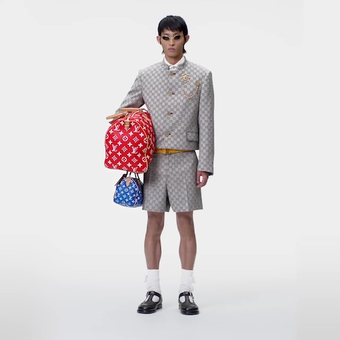 Creative Director Pharrell Williams revisits the iconic Speedy P9 Bandoulière 50 Monogram Leather bag in luxuriously soft and supple calfskin with a bold primary colorway. The Monogram is printed on the Speedy using a sophisticated silk-screen technique that reproduces the twill aspect of the Monogram on canvas, a blurry, almost hand-painted effect.
