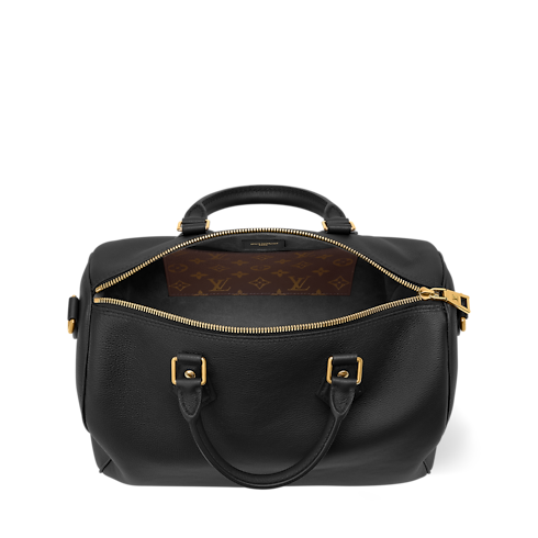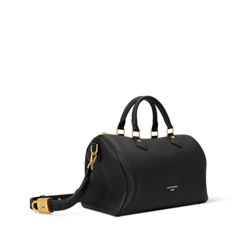 The perfect travel companion, this Low Key edition of the Speedy Soft 30 is crafted from supple calf leather in a timeless shade. Adorned with a signature LV padlock in a aged gold-toned finish, this sleek design comes with a removable strap for multiple carry options. It is sized to fit everyday essentials and includes a flat pocket on the inside.