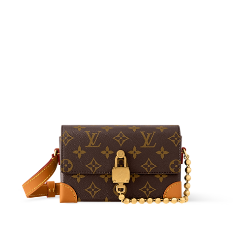 The Steamer Wearable Wallet is made from Taurillon leather embossed with the Monogram pattern and finished with black hardware, including the signature chain-and-pin detail. The inside zipped pocket keeps belongings secure. It can be worn comfortably on the shoulder thanks to its adjustable strap.
