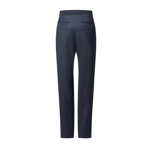These tailored track pants twist the codes of men’s formal wear with their sporty aesthetic. Crafted from fine certified wool in a timeless navy blue Glen plaid, they are adorned with a rhinestone LV signature and LV grosgrain trim on the outside of each leg. A matching track top makes an elegant modern set.
