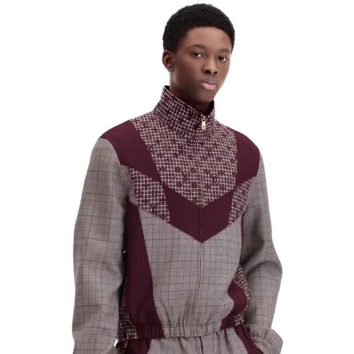 This tailored track top elevates a casual silhouette with heritage fabrics inspired by this collection’s British country house theme. Crafted in rich burgundy tones, it features an elegant glen plaid base with sporty graphic inserts in Monogram Plaid and contrasting plain panels. Perfect for relaxing after an active day, this piece has matching jogging bottoms for a modern yet timeless look.