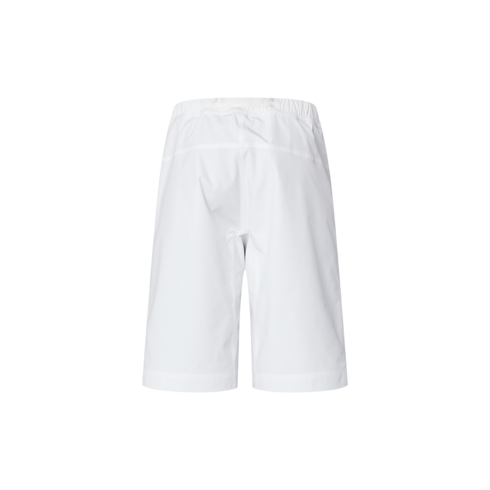 These technical shorts inspired by the Louis Vuitton 37th America’s Cup blend elegance with high-performance for active days on deck. Their minimalist silhouette integrates two practical waterproofed pockets on the legs, with a woven tonal Vuitton logo on the left pocket, while the adjustable waist strap has a playful anchor-like buckle. Pair with a matching windbreaker.