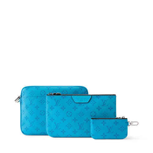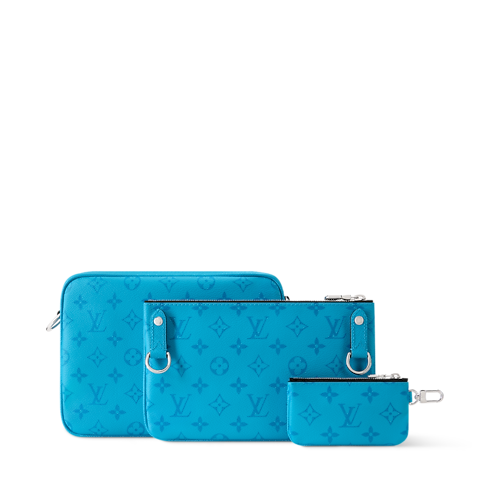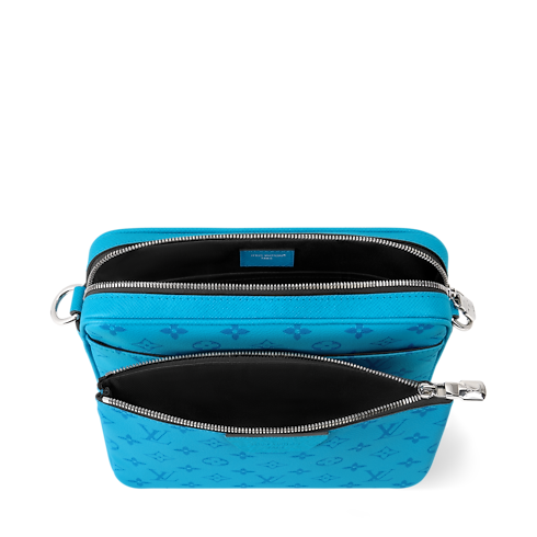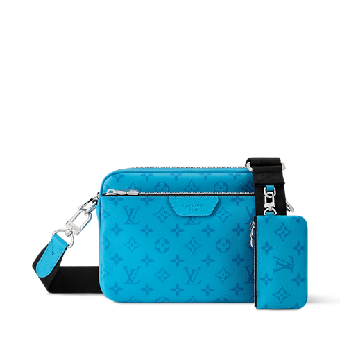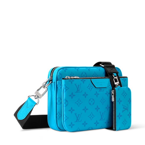 The modular Trio Messenger pairs Monogram coated canvas with Taigarama leather and is lined in black textile. The bright colorway, tone-on-tone Monogram, and wide black strap lend a modern feel. Composed of a main pouch, a removable zipped pocket, and a detachable coin purse, it combines versatility with sophistication.