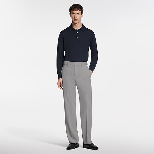 Discreet luxury defines this navy blue long-sleeved polo shirt, with a superfine knit blending merino wool, silk and cashmere for superior softness and durability. A signed VVN leather tab on the left hem evokes the House’s trunk-making heritage. This exclusive piece can complete a wide array of looks, from formal to weekend ensembles.