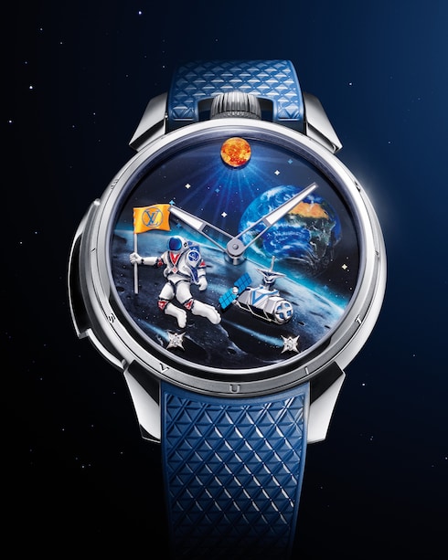 Louis Vuitton embarks on an interstellar odyssey with the Tambour Taiko Galactique – an invitation to explore space in an ode to the House’s spirit of travel. Powered by the in-house LFT AU14.02 caliber, the timepiece combines a minute repeater and an automata mechanism, enlivening the dial through seven mesmerizing animations. Within a futuristic Tambour Taiko case, meticulous enameling and engraving are united with a mechanical movement, showcasing the exceptional savoir-faire of the artisans at La Fabrique du Temps Louis Vuitton.