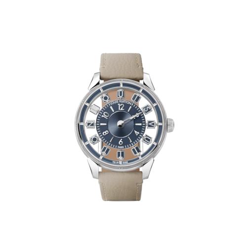 Revealing the in-house caliber through a display case back, the four Tambour Taiko Spin Time Air models feature a 42.5mm case that frames the dial's levitating hour-display cubes. Refined with four gently curved faces, the cubes create a cushion-shaped profile that enhances the play of light.