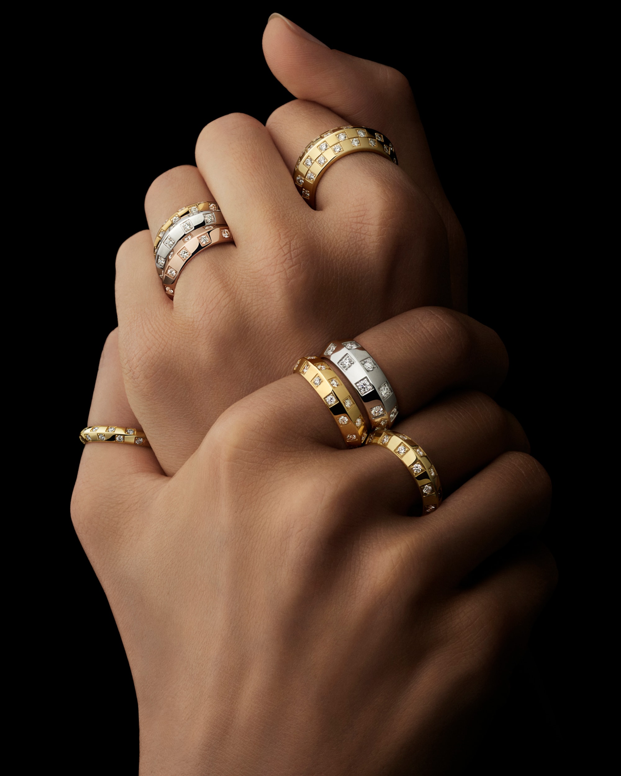 Elegant and graphic, the Damier ring fuses refined craftsmanship with contemporary audacity — a statement piece seamlessly sculpted for an everyday softness.