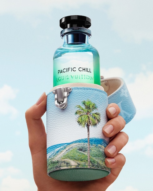 For Pacific Chill, artist Alex Israel mirrors the subdued hues of the mesmerising Californian landscape. The new “impression of the morning sun” painting envelopes the fragrance travel case in a tranquil palette, imbued with a regenerative vigor.