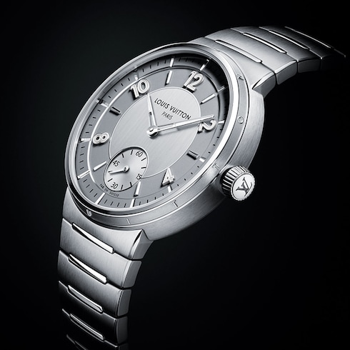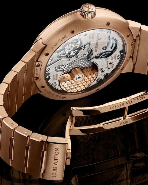 Embellished with contrasting finishes, the unisex timepiece features Louis Vuitton’s first integrated bracelet, which blends seamlessly into the slim case – offering comfort and fluidity through its curved lines.