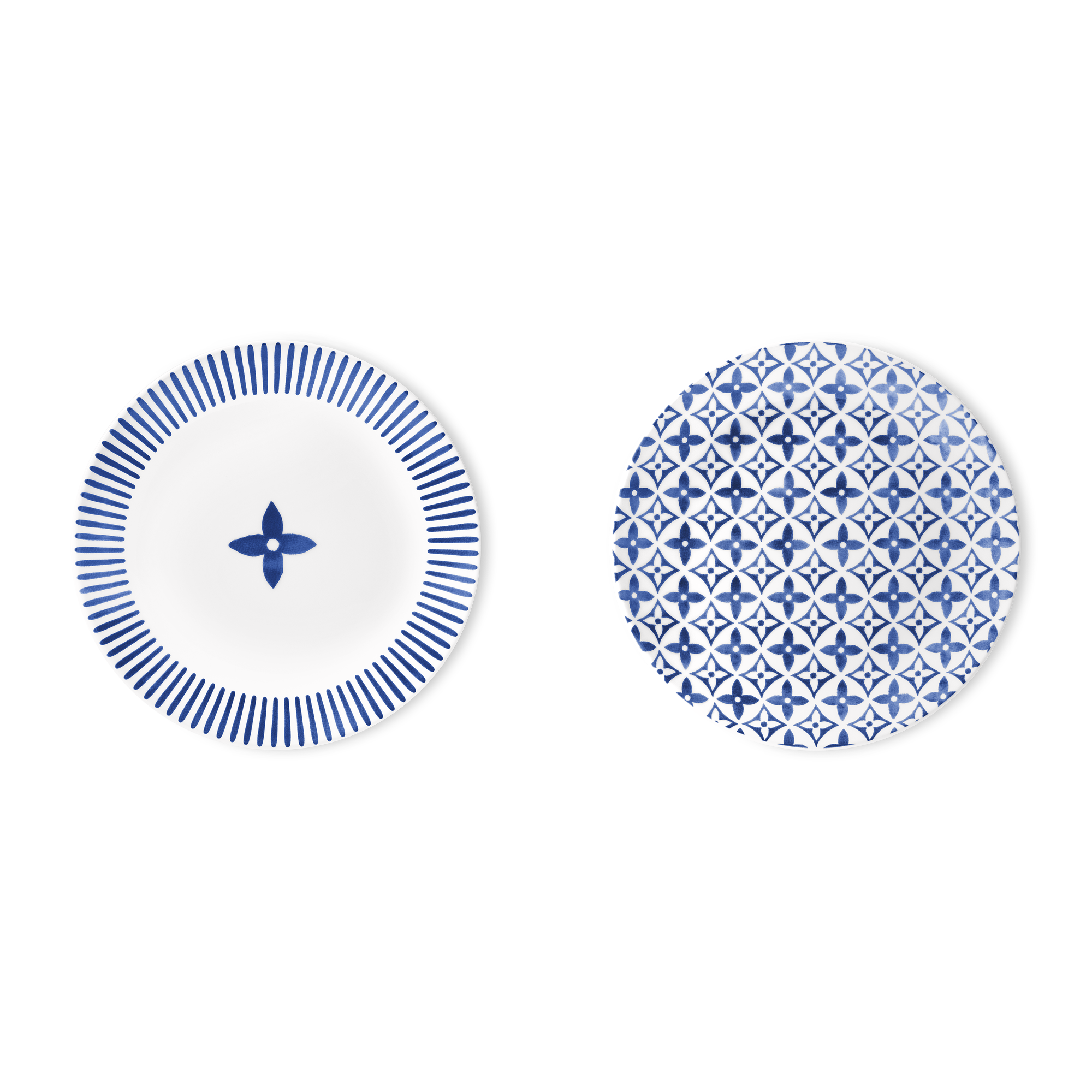 Set Of 2 Dinner Plates Monogram Flower Tile